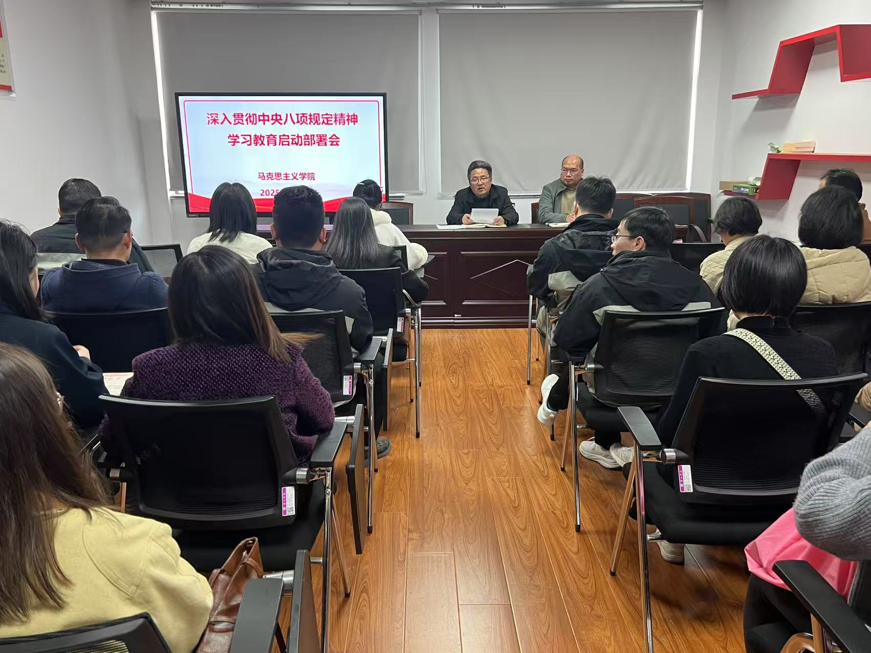 刘春安就学院深入贯彻中央八项规定精神学习教育提出具体要求:一是要在学习上下功夫,将学习习近平总书记关于加强党的作风建设的重要论述和中央八项规定及其实施细则精神作为首要任务,确保学习入脑入心。二是要紧密联系实际,认真对照中央八项规定及其实施细则精神,深刻检视自身存在的问题。三是要坚持立查立改、即知即改,明确整改目标、整改措施、整改时限,确保问题整改到位。