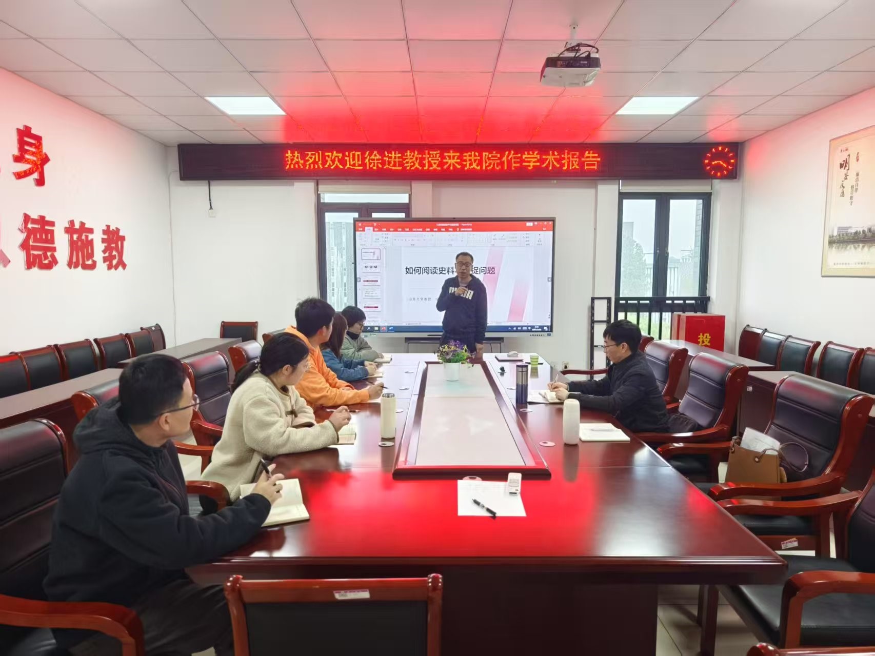 3月28日上午,山东大学历史学院教授、博士生导师徐进应邀在太阳集团网站8722以“史料阅读与问题意识”为题,开展了一场学术讲座。讲座由中国近现代史纲要教研室党支部书记吴云峰主持。