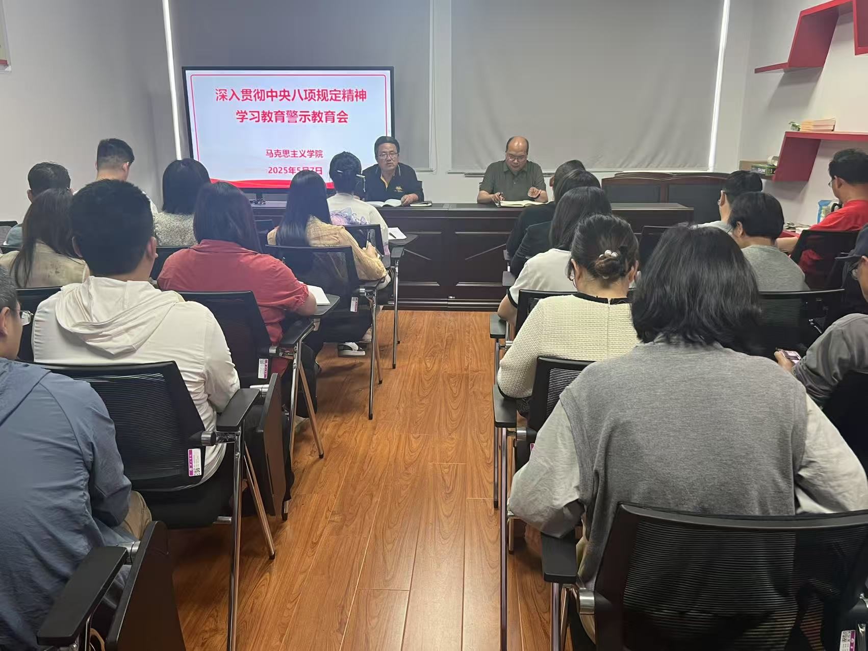 5月7日下午,太阳集团网站8722在逸夫综合楼5513会议室召开深入贯彻中央八项规定精神学习教育警示教育会。该院全体教师参加会议。会议由该院党总支书记刘春安主持。