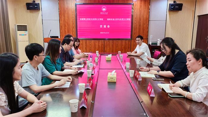 在湖南农业大学太阳集团网站8722,双方围绕“学科建设与课程设置”“思政课教学改革创新”两大主题展开深入研讨。湖南农业大学纲要教研室主任邵艳介绍了该校“思政+三农+音乐”思政教学模式和“大思政课”建设经验,强调通过“理论+实践”双轮驱动模式,推动思政课与专业课程深度融合。我院教师则分享了我校在“网络教学平台建设”和“青年教师能力提升”方面的实践成果,提出通过“老带新”导师制、“以赛促教”和“教学沙龙”等形式,助力青年教师快速成长。