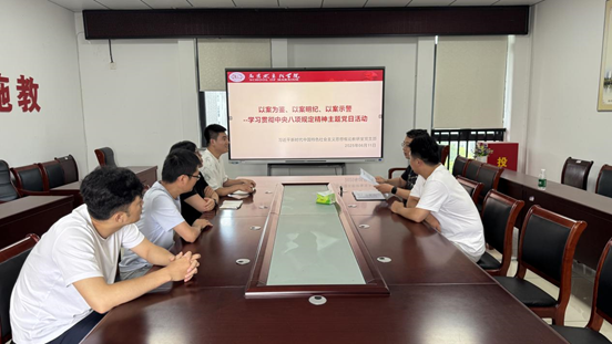 6月11日下午,习近平新时代中国特色社会主义思想概论教研室党支部在逸夫综合楼5508会议室举行以案为鉴、以案明纪、以案示警主题党日活动,进一步学习贯彻落实中央八项规定精神。
