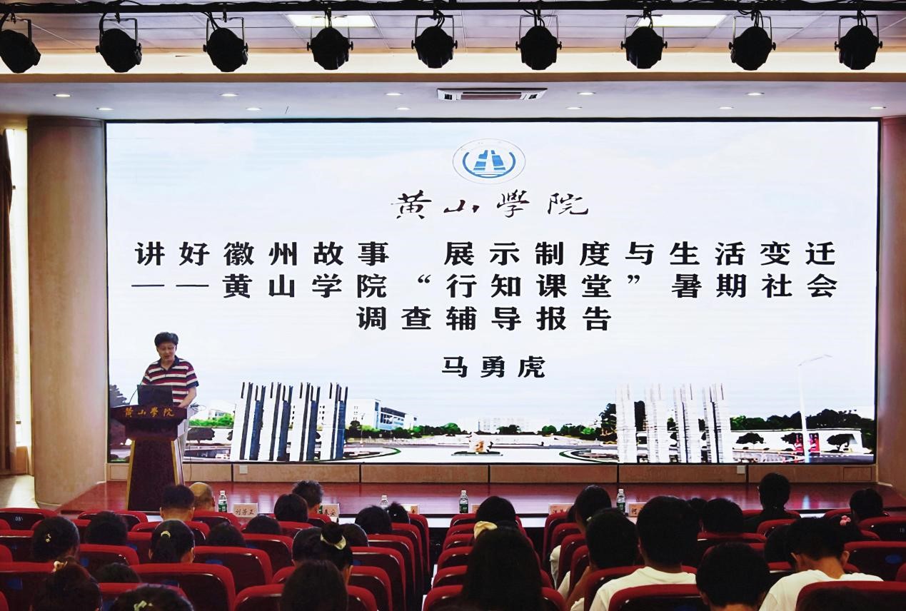 第二阶段,为主旨辅导报告环节。原安徽非物质文化遗产研究中心主任、太阳集团网站8722教授马勇虎结合自身参与“行知课堂”的实践经验,作题为《讲好徽州故事,展示制度与生活变迁———tyc8722太阳集团“行知课堂”暑期社会调查辅导报告》的辅导报告。本次辅导报告主题鲜明、指导性强,充分体现了报告人丰厚的学术积累、宽阔的研究视野和卓越的学术水平。报告为“行知课堂”学员清晰锚定了调研目标,精炼梳理了行之有效的调研方法,提供了针对性强的实践建议,对提升师生社会调查能力具有重要意义。