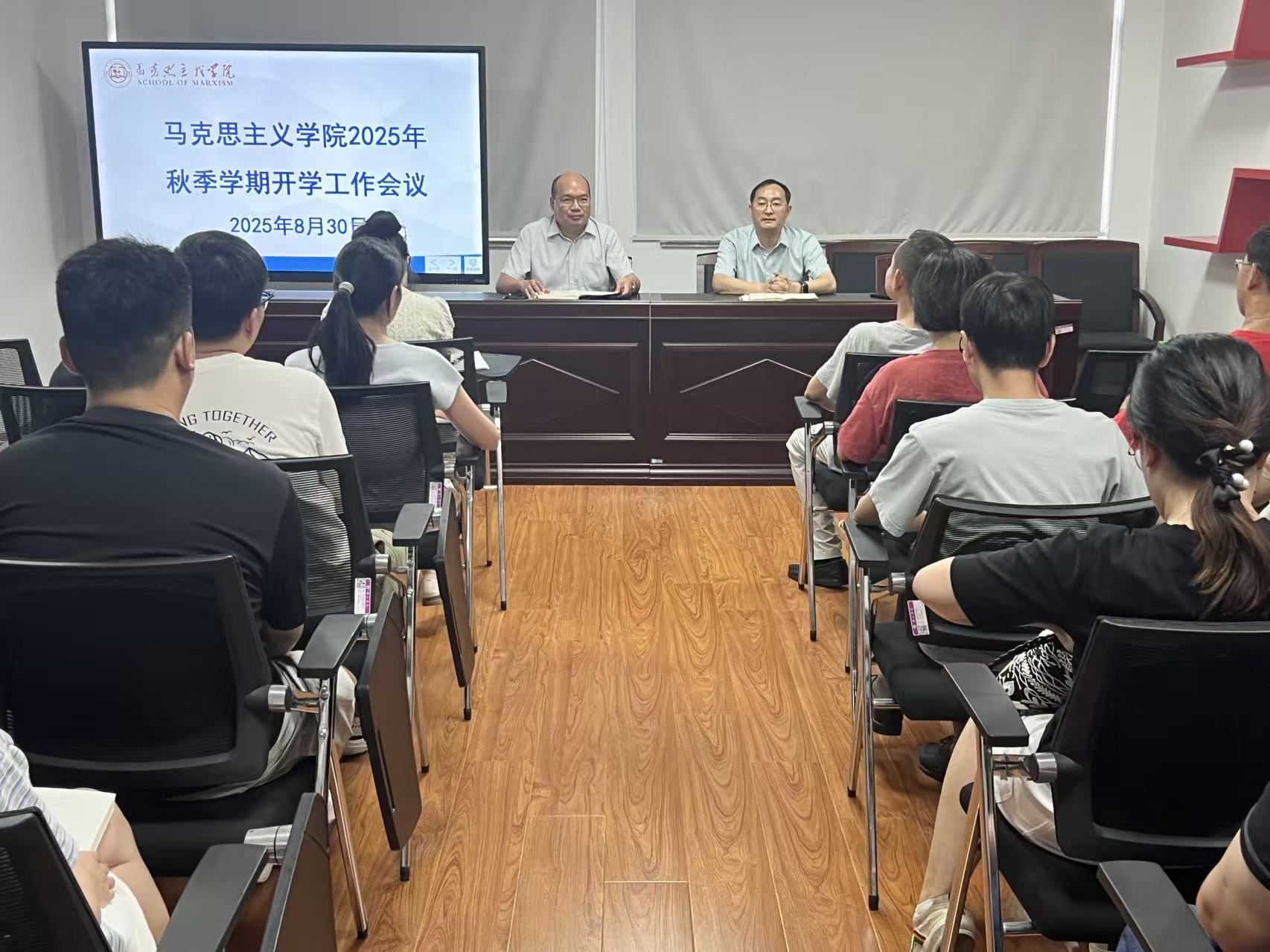 该院党总支副书记(主持工作)廖荣军围绕新学期发展目标,提出四点要求。一要全面贯彻落实学校第四次党代会精神,紧扣党代会提出的“申硕、升大、创一流”战略目标,坚持党建引领,全面落实立德树人根本任务。二要改革创新,坚持“干”字当头往前赶,科学谋划学院“十五五”规划蓝图,明确主攻方向,把党代会确立的发展目标转化为切实的工作思路和具体举措。三要始终把党的政治建设放在首位,把党的政治建设融入学院重要决策部署,做到党的政治建设与学院中心工作紧密结合、相互促进。四要坚持“马院姓马,在马言马”的鲜明导向,聚焦师德师风建设与意识形态工作,将底线思维融入为人师表的一言一行,严守言论红线,做好课堂、讲座、论坛等阵地管理,牢牢把握意识形态工作的领导权、话语权。