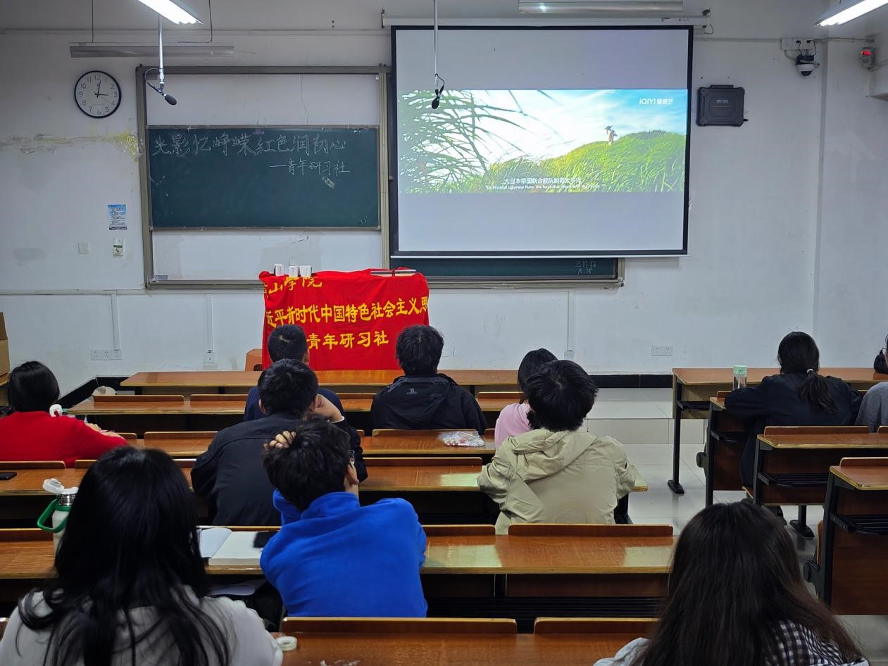 为深化爱国主义教育,传承红色基因,10月26日,我校习近平新时代中国特色社会主义思想青年研习社在文渊楼1103教室开展“光影忆峥嵘,红色润初心”主题观影活动。活动围绕纪念中国人民抗日战争暨世界反法西斯战争胜利80周年展开,共70名学生参与。