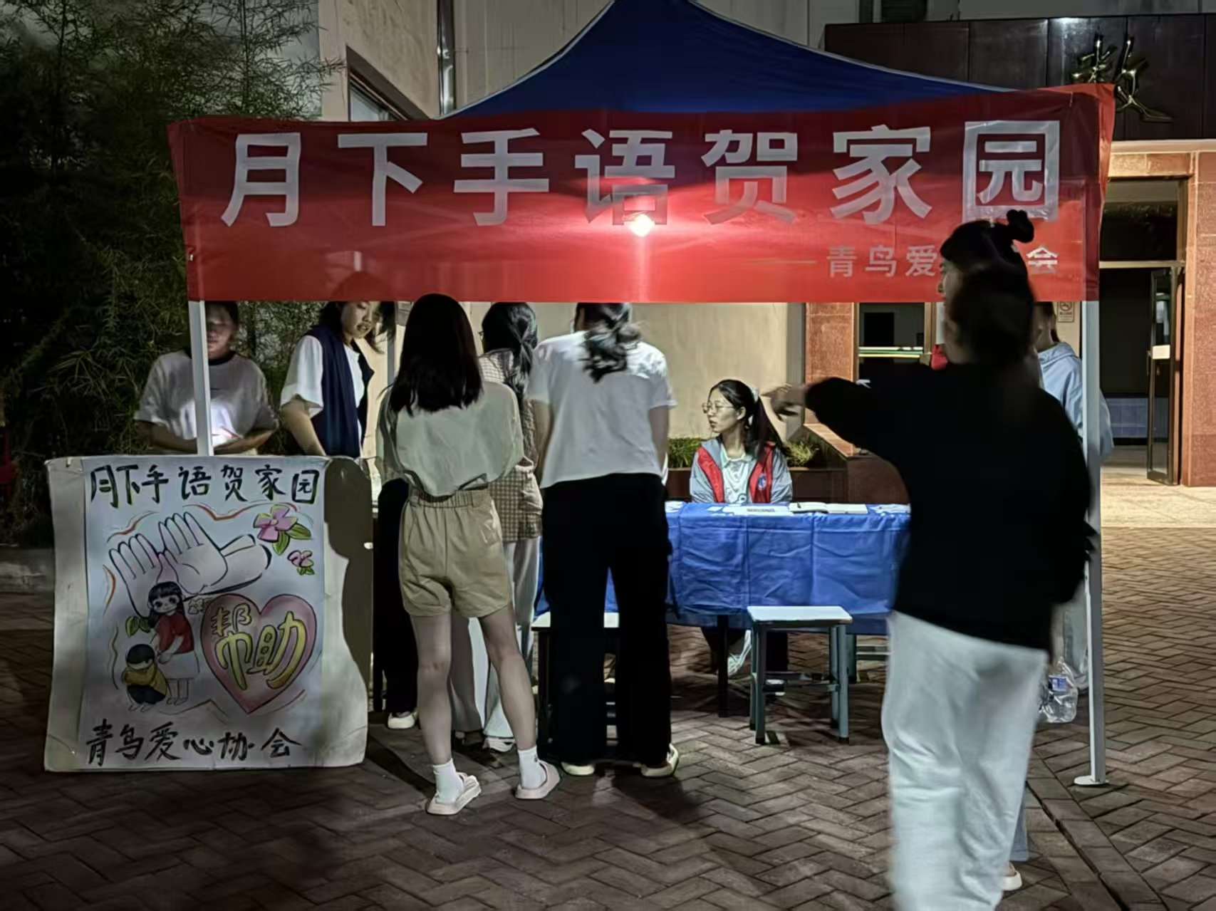 为普及手语知识,加深对传统文化与国家庆典的文化理解,10月18日下午,tyc8722太阳集团青鸟爱心协会在南北校区同时举办“我们一起过节”之“月下手语贺家园”活动。本次活动吸引近50名学生参与。