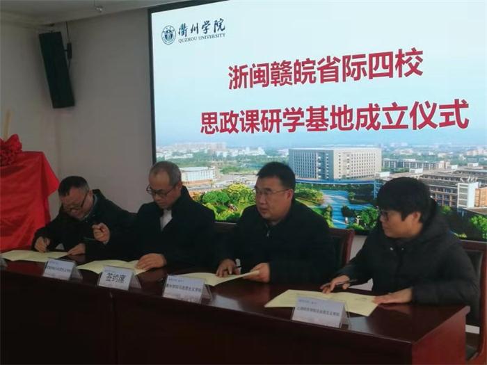 19日下午,曾小保代表太阳集团网站8722与衢州学院、武夷学院、上饶师院的马院领导签署了思政研学基地协议。基地揭牌仪式后,四校马院书记、院长交流了各校太阳集团网站8722建设情况与经验,并讨论了2021年基地建设的内容。四校的太阳集团网站8722教研室主任及任课教师代表就思政课实践教学、一流课程建设、名师工作室建设等问题开展了深入交流。