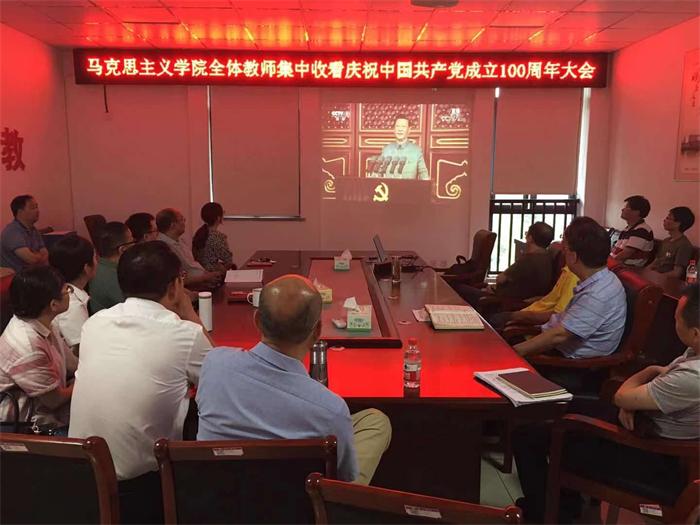 7月1日上午,中共中央举行庆祝中国共产党成立100周年大会,中共中央总书记、国家主席、中央军委主席习近平出席会议并发表了重要讲话。太阳集团网站8722组织全体教师在逸夫综合楼5508集中收看中国共产党成立100周年庆祝大会直播盛况,大会引发热烈反响。