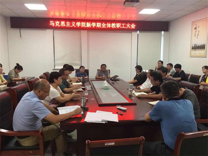 曾小保总结了上半年及暑期学院在教学、科研、师资队伍建设等方面的工作,部署了开学阶段和本学期需要完成的重点工作,并介绍了新入职教师。曾小保强调,全体教师要强化责任心和使命感,严守教学纪律,齐心协力保证教学工作有序进行;各教研室要把习近平总书记“七一”重要讲话精神融入思政课程,有针对性地开展集体备课和教研活动;要发挥教学名师、教研室主任等骨干教师的引领作用,鼓励新老教师手拉手传帮带,将思政课教学的优良经验不断发扬传承;在科研方面要有学术追求和学术情怀,要善于结合专业实际,坚持不懈开展科学研究。