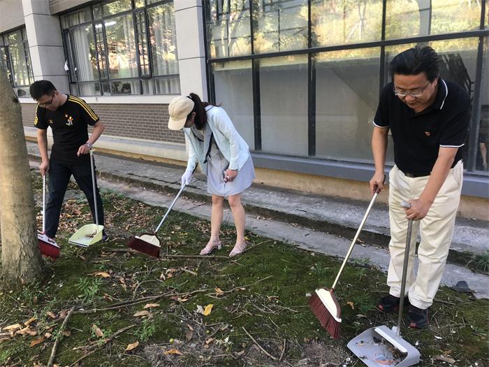 为了践行党史学习教育,结合学校文明创建活动要求,充分搭建党员活动平台,发挥基层党员先锋模范作用,2021年9月23日,太阳集团网站8722教工党支部组织党员教师前往文端楼开展卫生清扫志愿服务活动。