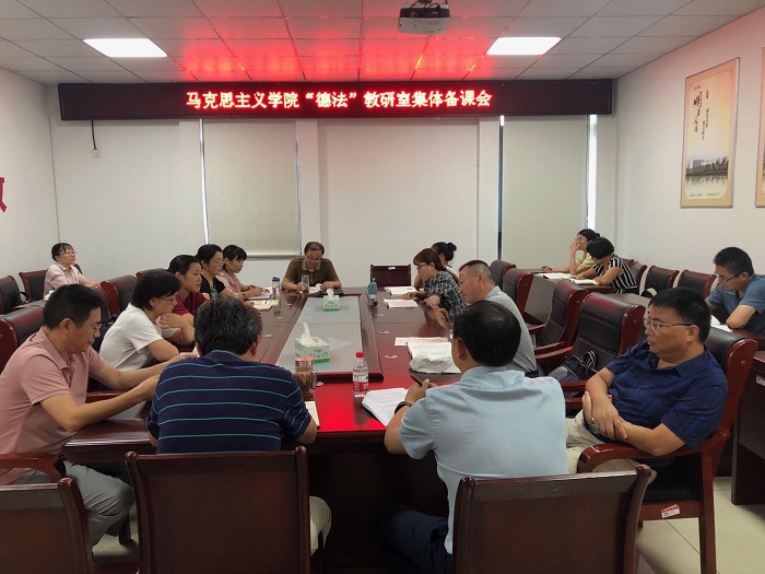 会上,孙海霞汇报了暑期参加安徽省教育厅思政课培训的心得体会,提出思政课在教学上必须紧扣教材,同时要有一定的知识拓展,才能更好地提升教学效果。韩淑芹老师介绍了《思想道德与法治》第一课绪论的课程设计、教学重点、难点及教学方法,阐述了教学思路,让学生了解《思想道德与法治》的重要性。最后,大家就“四史”学习教育进入思政课堂、线上线下混合教学等问题展开了讨论交流。