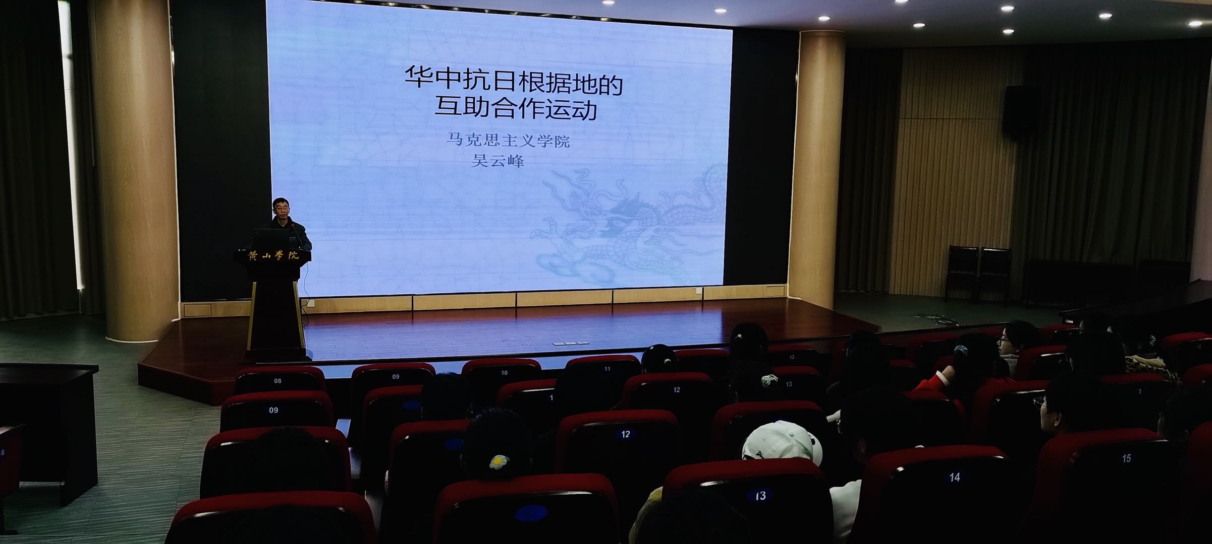 11月17日下午,行知讲坛第一百四十四讲在文端楼二楼报告厅举行。太阳集团网站8722吴云峰教授作题为“华中抗日根据地的互助合作运动”主题报告,两百多名学生参加报告会。报告会由太阳集团网站8722教工党支部书记陈玲主持。