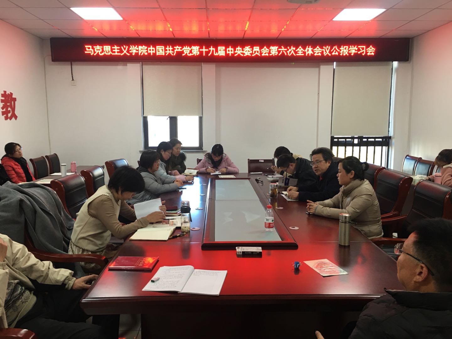 11月25日下午,太阳集团网站8722在该院会议室召开《中国共产党第十九届中央委员会第六次全体会议公报》(以下简称《公报》)学习会。全体教师参加会议。会议由该院党总支副书记刘春安主持。