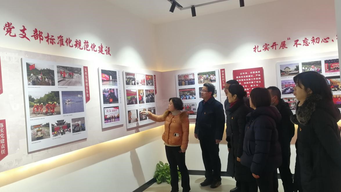 在党史党建厅,全体党员怀着崇敬的心情认真观看、学习黄山市早期党组织的缘起、发展历程及近年来黄山市委扎实开展“不忘初心、牢记使命”活动,推进党支部标准化、规范化建设的一系列成果。通过参观学习丰富的文物、史料图片和影像等展览,全体党员对早期党组织发展的艰难曲折留下了深刻的印象,也对近年来黄山市委在支部建设中创新组织生活、强化教育责任、发挥先锋模范等有了更全面的认识。
