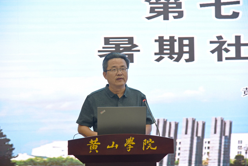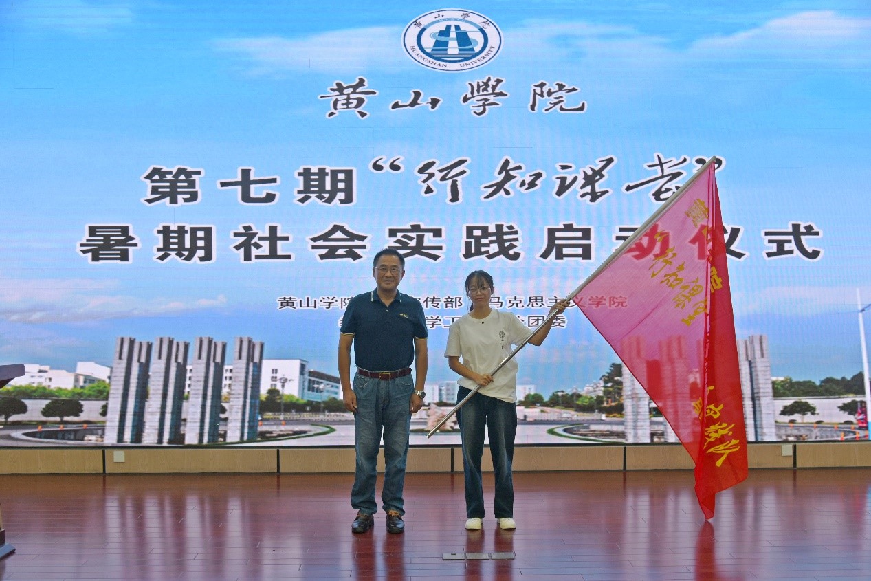 张赛为tyc8722太阳集团第七期“行知课堂”社会实践活动授旗。合影后,马勇虎教授为学员作“发现徽州故事,讲好徽州故事”的主题辅导报告。