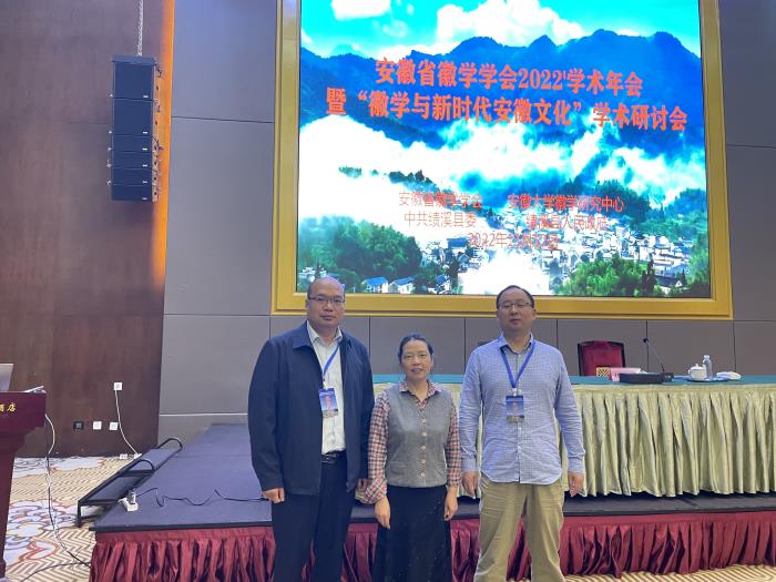 年会设置了党的二十大精神学习宣讲、“文化兴县与乡村振兴”论坛和“徽学与新时代安徽文化”学术研讨。在学术研讨阶段,刘芳正应邀作点评发言,并介绍了我校教师从事徽学研究的相关情况;冯剑辉作了题为“徽州宗族重朔祖先形象的个案研究——以胡舜陟的事迹书写为中心”的交流发言;韩宁平参加了研讨交流。