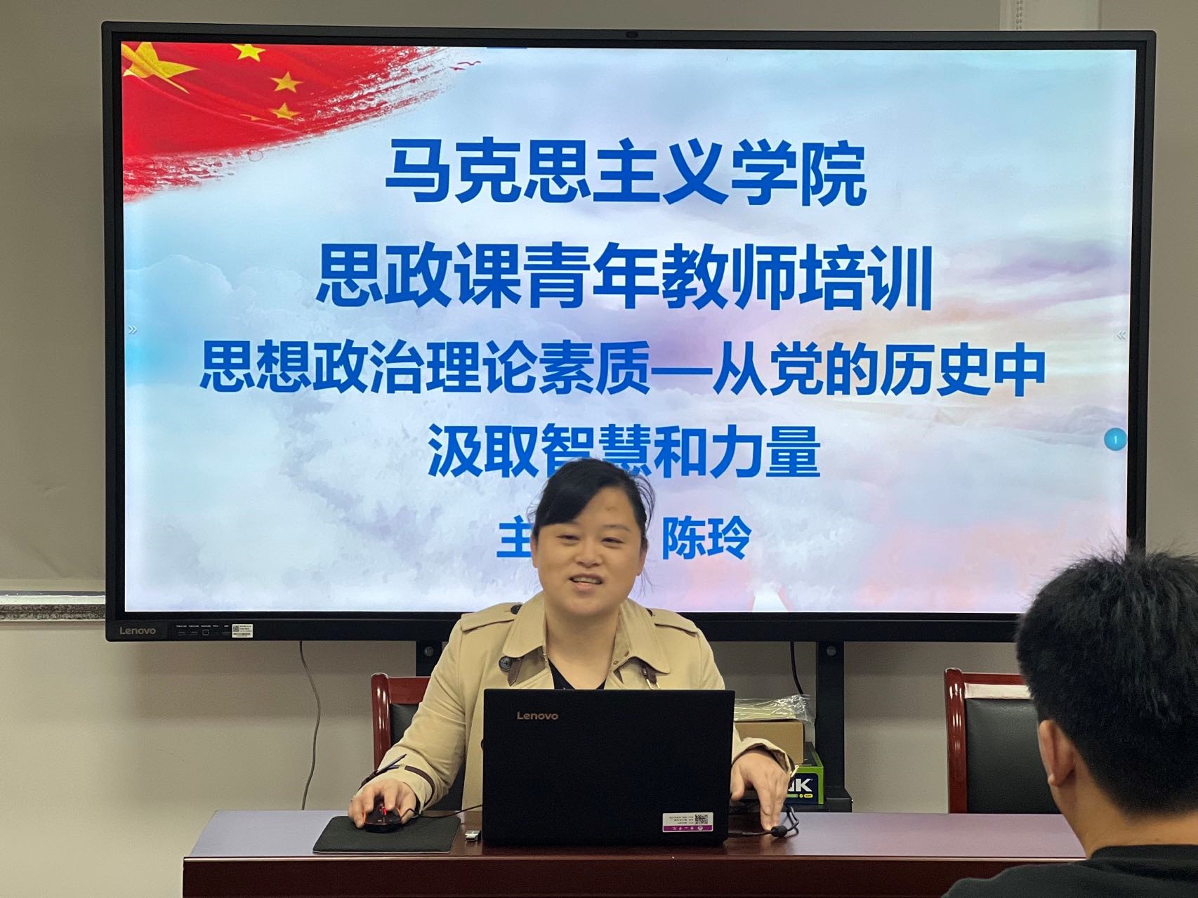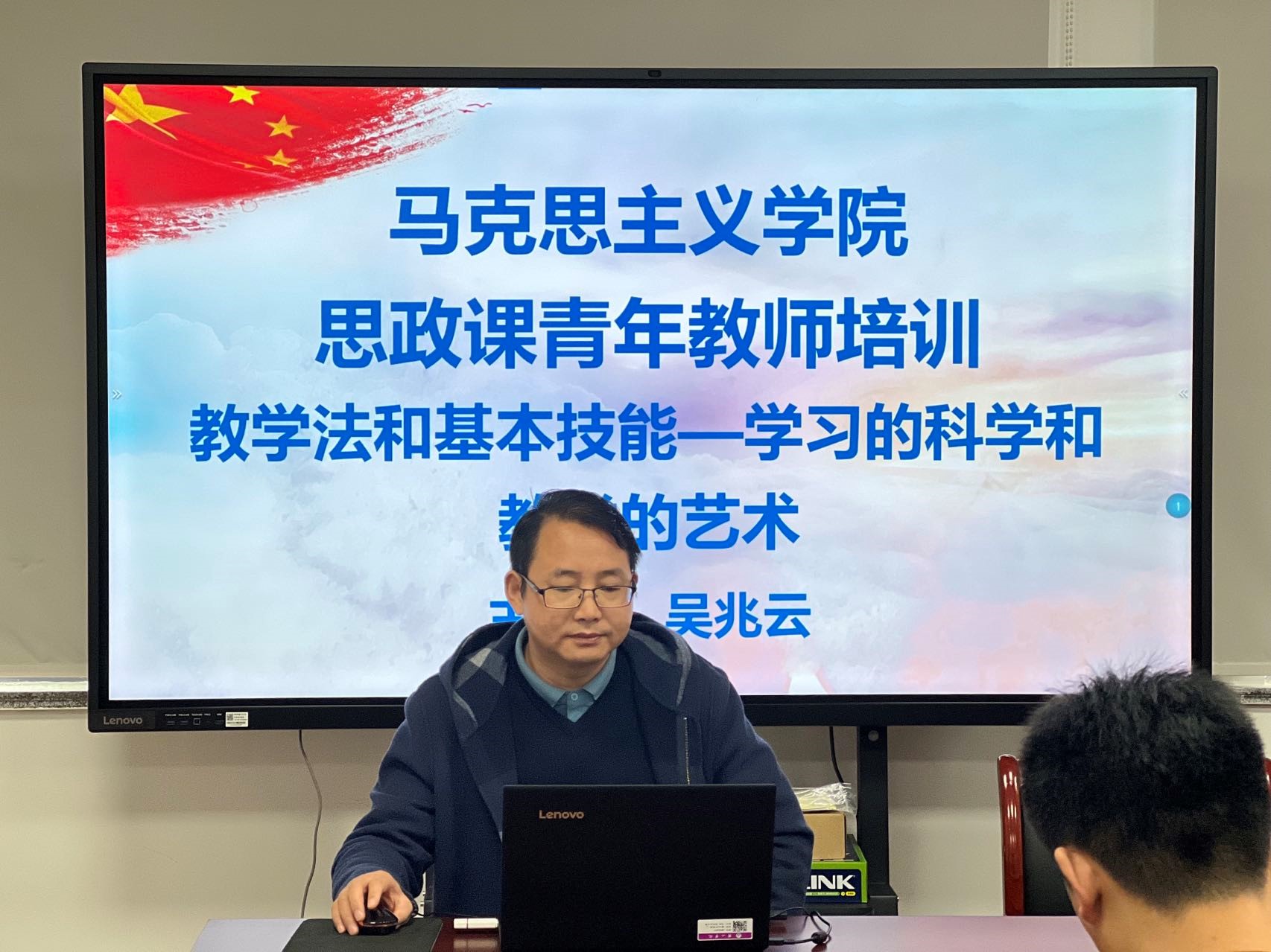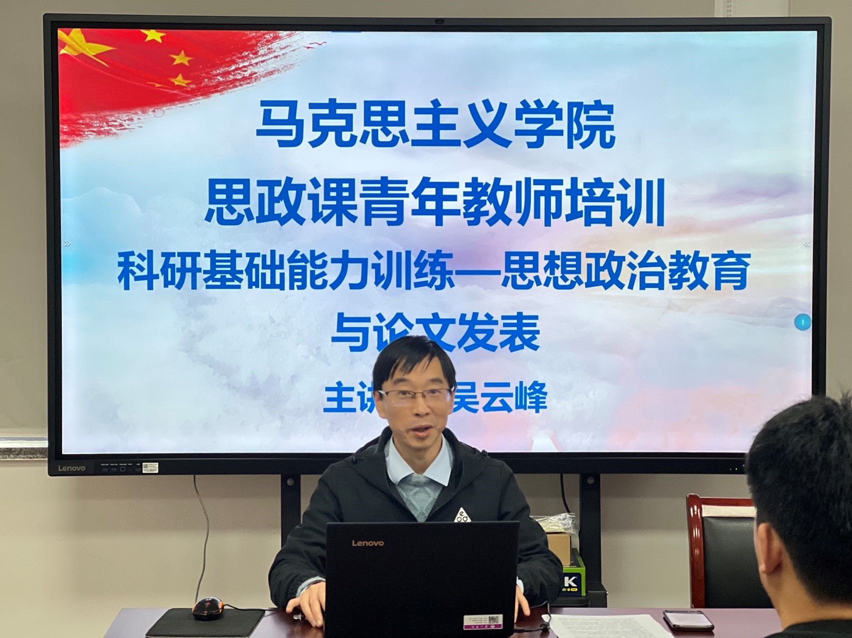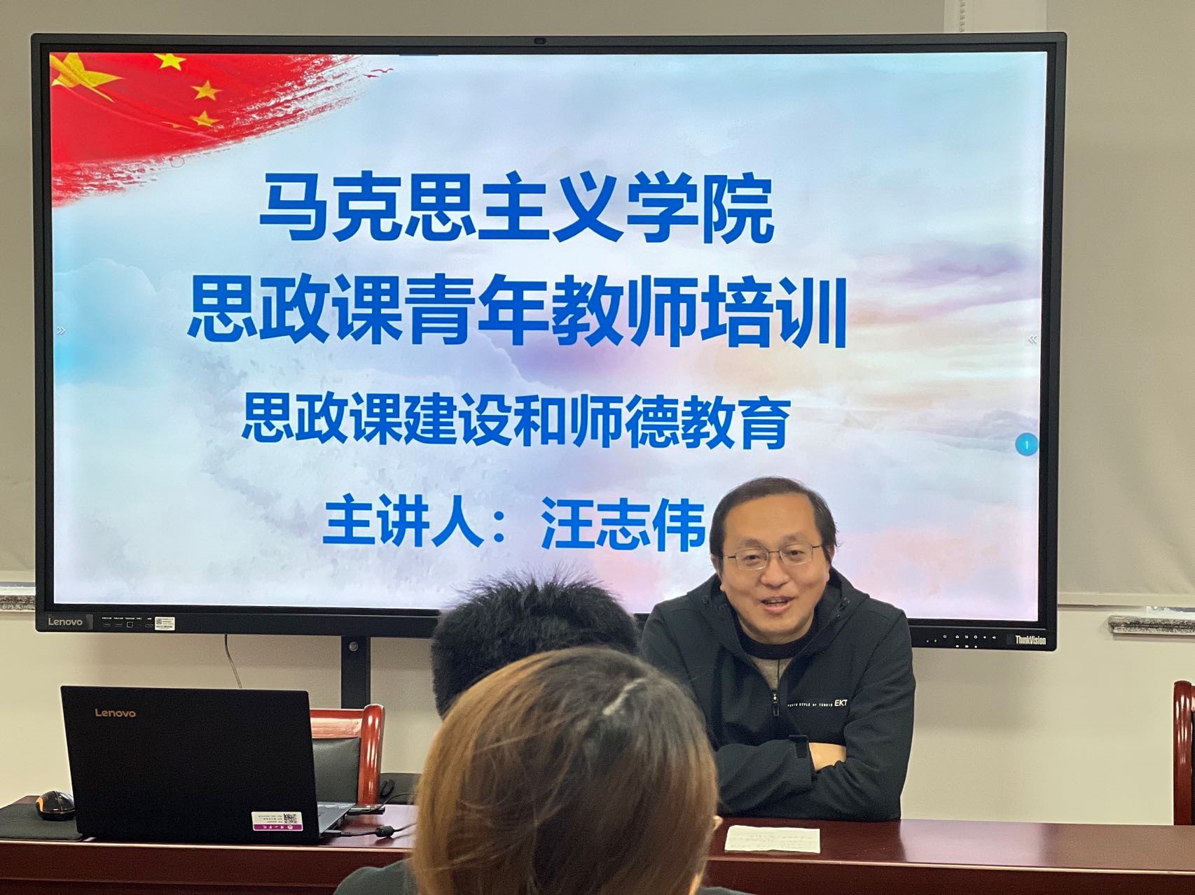 该院老教师汪志伟、毛泽东思想和中国特色社会主义理论体系概论教研室主任陈玲副教授、吴兆云副教授、中国近现代史纲要教研室主任吴云峰教授分别以“思政课建设和师德教育”、“思想政治理论素质——党的历史中汲取智慧和力量”、“教学法和基本技能——学习的科学和教学的艺术”和“科研基础能力训练——思想政治教育与论文发表”为题,围绕师德修养、理论能力、教学能力及科研能力等方面对青年教师开展培训。