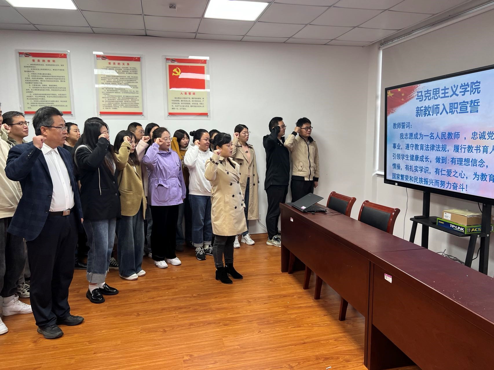 2022年新入职教师进行了入职宣誓,表示将自觉按照八个“统一”要求讲好思想政治理论课,带头落实好立德树人根本任务,做学生良师益友,为培养德智体美劳全面发展的社会主义建设者和接班人而努力奋斗。