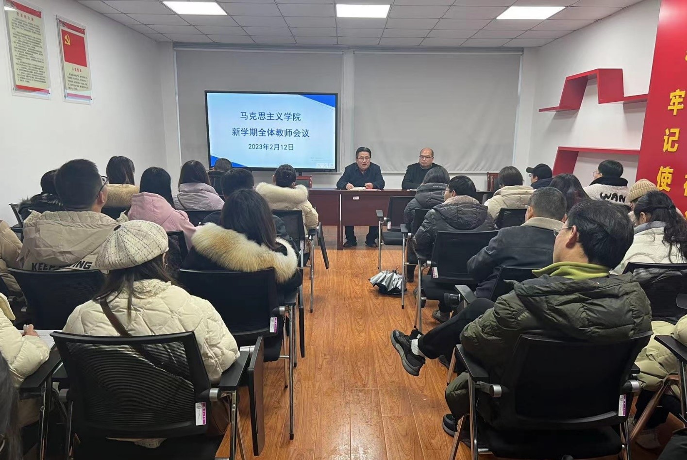 刘春安传达了学校新学期工作会议精神,并就2023年度学院整体工作进行了谋划与展望。他指出,2023年学院要以高质量党建为统领,以深入学习宣传贯彻党的二十大精神为主线,以提升思政课教学质量为目标,以加强师资队伍建设为重点,坚定不移用习近平新时代中国特色社会主义思想铸魂育人。他希望,全院教职工不忘立德树人初心,携手共进,迎难而上,以更加积极主动的工作态度扎实有效完成各项任务,不断提升太阳集团网站8722建设的科学化、规范化和现代化水平,大力推动学院党建和事业取得新发展。