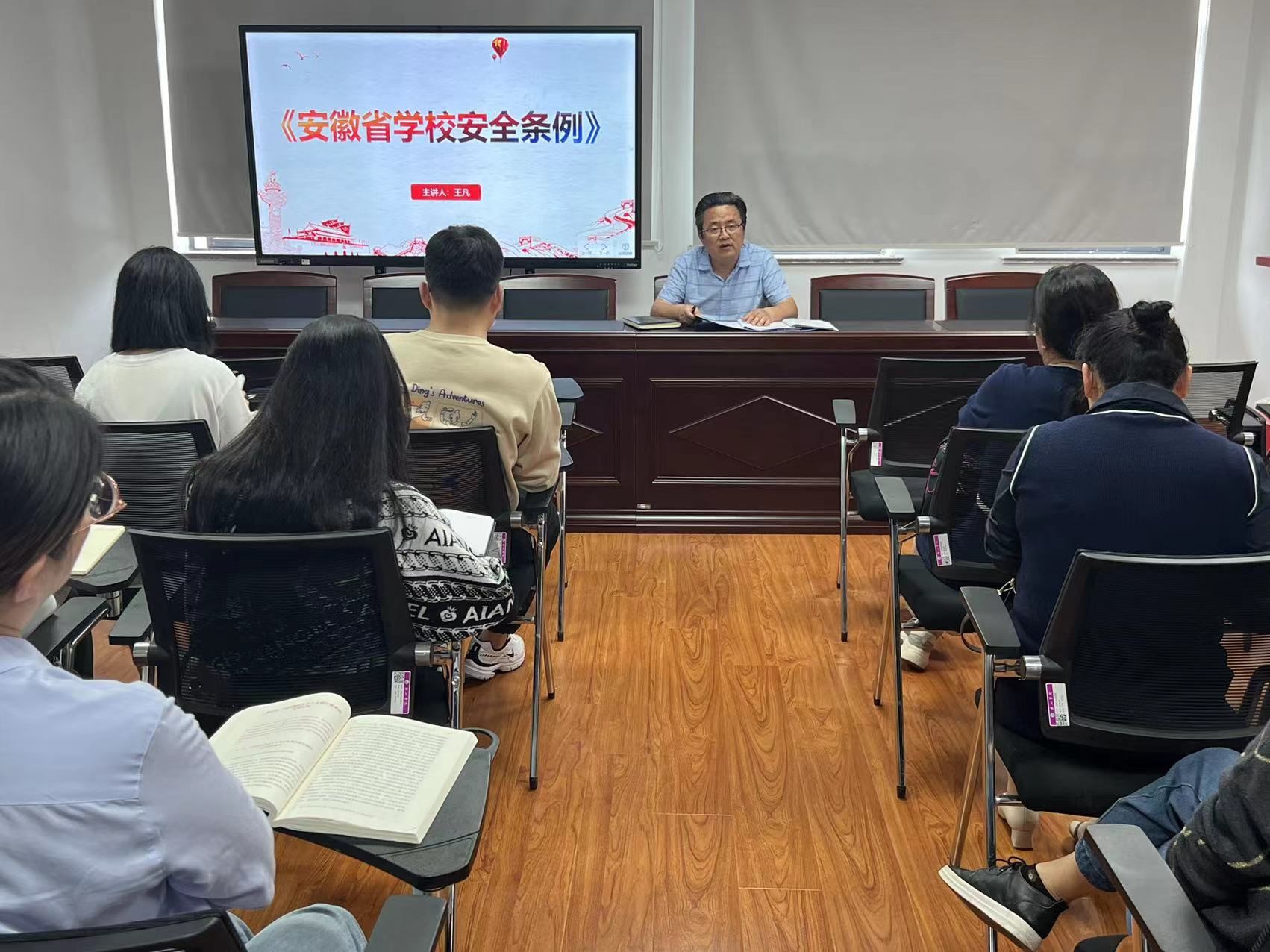 4月19日下午,太阳集团网站8722在该院会议室举办学习贯彻《安徽省学校安全条例》(以下简称《条例》)专题辅导讲座。该院全体教师参加会议。会议由该院党总支书记刘春安主持。