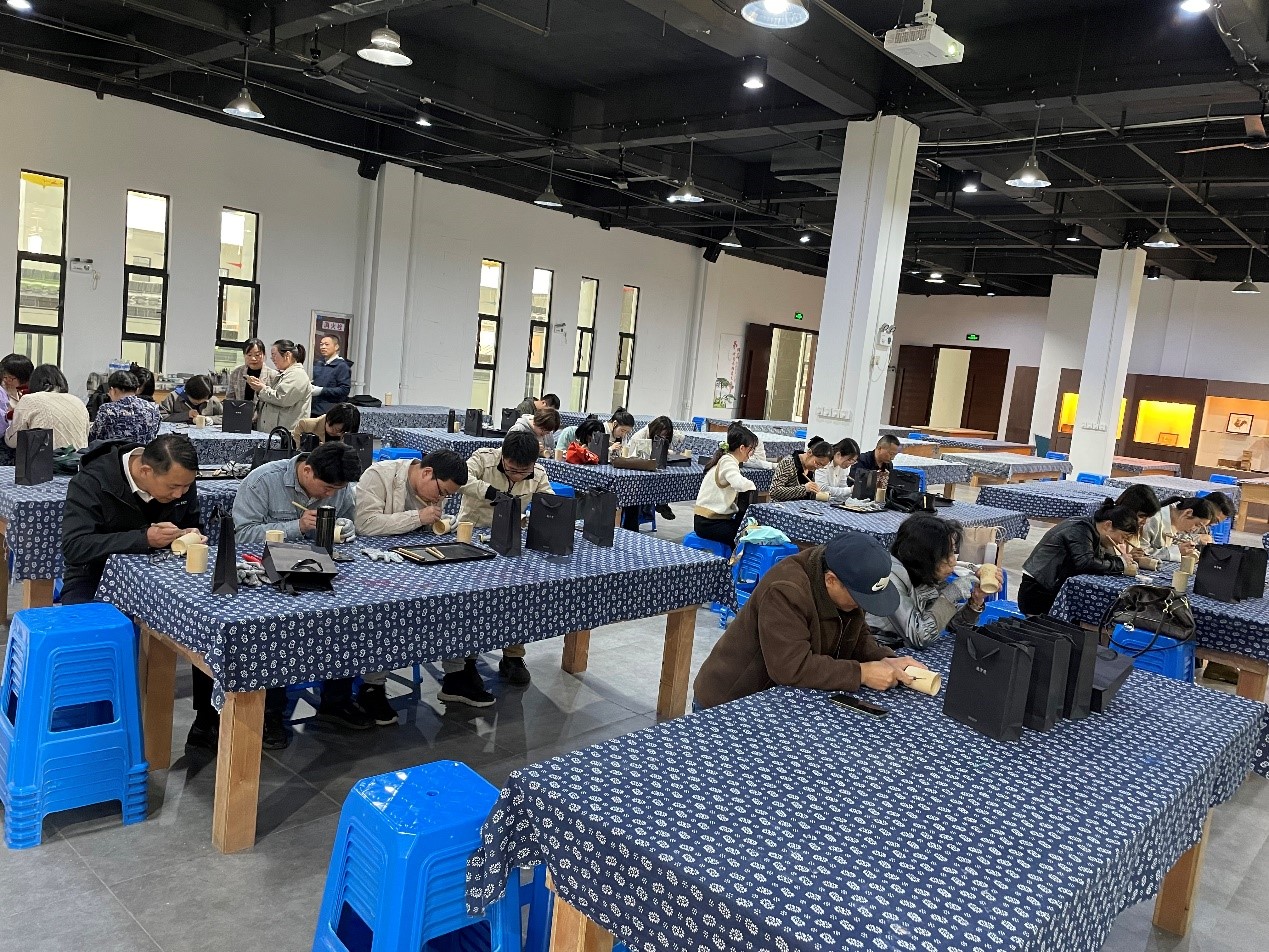 随后,大家来到徽字号博物馆的研学厅,亲身体验徽雕艺术。徽字号博物馆的徽雕专家为大家仔细讲解了竹雕的技艺、方法。面对印有“礼”“孝”等字的竹筒,大家纷纷拿起雕刻刀,认真地雕刻、打磨手中的作品。