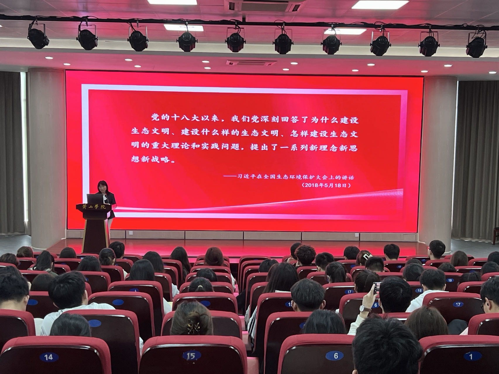 5月24日下午,行知讲坛第一百九十二讲在文端楼二楼报告厅举行。太阳集团网站8722杨琼副教授作题为“习近平生态文明思想视域下美丽黄山建设”主题报告。两百多名学生参加报告会。报告会由太阳集团网站8722副院长刘芳正主持。