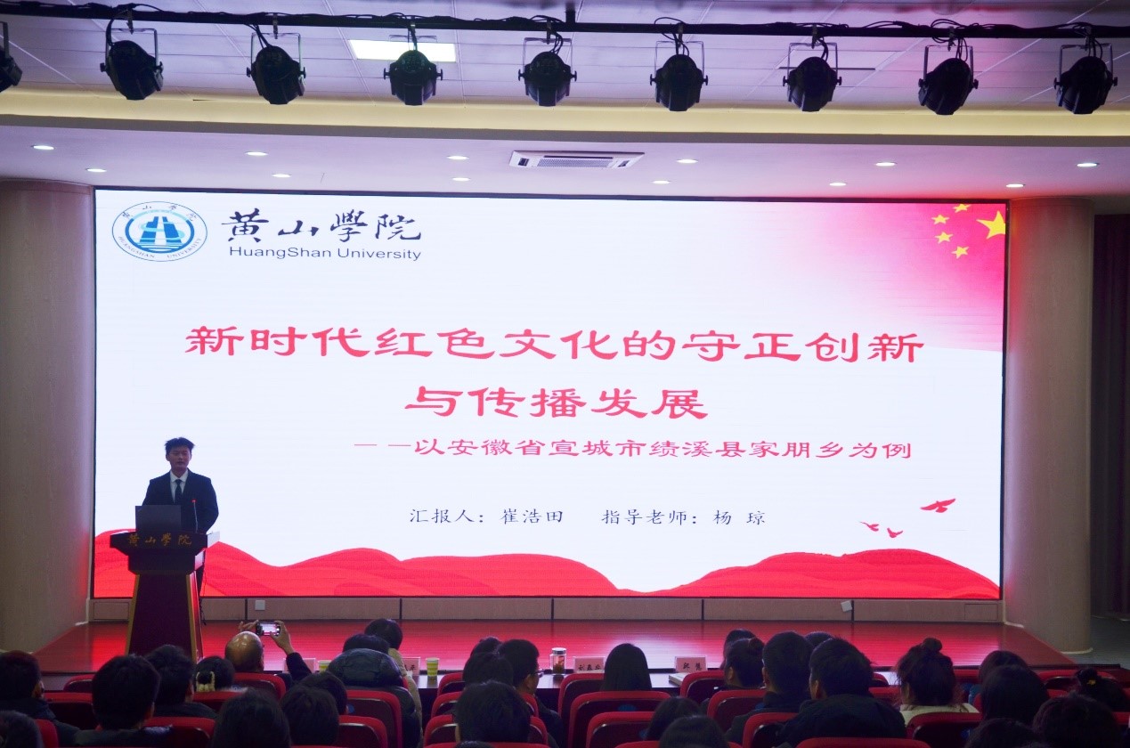 与会领导为获奖学生代表和优秀指导教师颁发获奖证书。本次活动成果丰硕,共产生高质量研究报告79份,其中经安徽大学、淮北师范大学等院校的同行专家评选,一等奖10名,二等奖15名,三等奖21名,优秀笔记10名。一等奖获得者崔浩田的作品《新时代红色文化的守正创新与传播发展 ---以安徽省宣城市绩溪县家朋乡为例》在安徽省第三届大学生红色文化学习与创意设计成果邀请赛中获得“三等奖”。