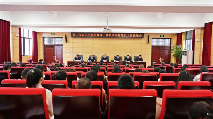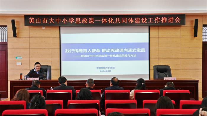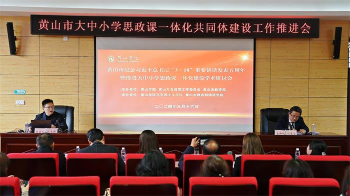 3月16日,黄山市大中小学思政课一体化共同体建设推进会在我校率水校区文昌楼211会议室召开。本次会议以“纪念习近平总书记‘3·18’重要讲话发表五周年暨推进大中小学思政课一体化建设”为主题。校党委委员、副院长张小明,黄山市委教育工委书记、市教育局局长胡勇,黄山职业技术学院校党委副书记、院长汪小飞等领导出席开幕式并讲话。来自全市各大中小学思政课教师一百四十余人参加会议。