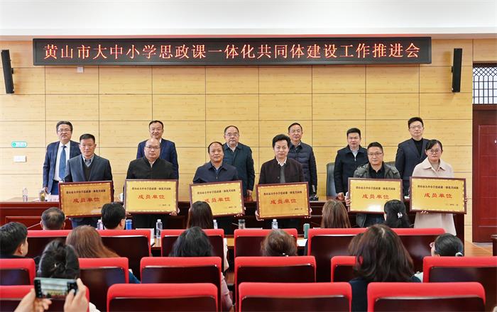 会议还宣读了《黄山市大中小学思政课一体化共同体立项通知书》,并为牵头高校和成员单位授牌。