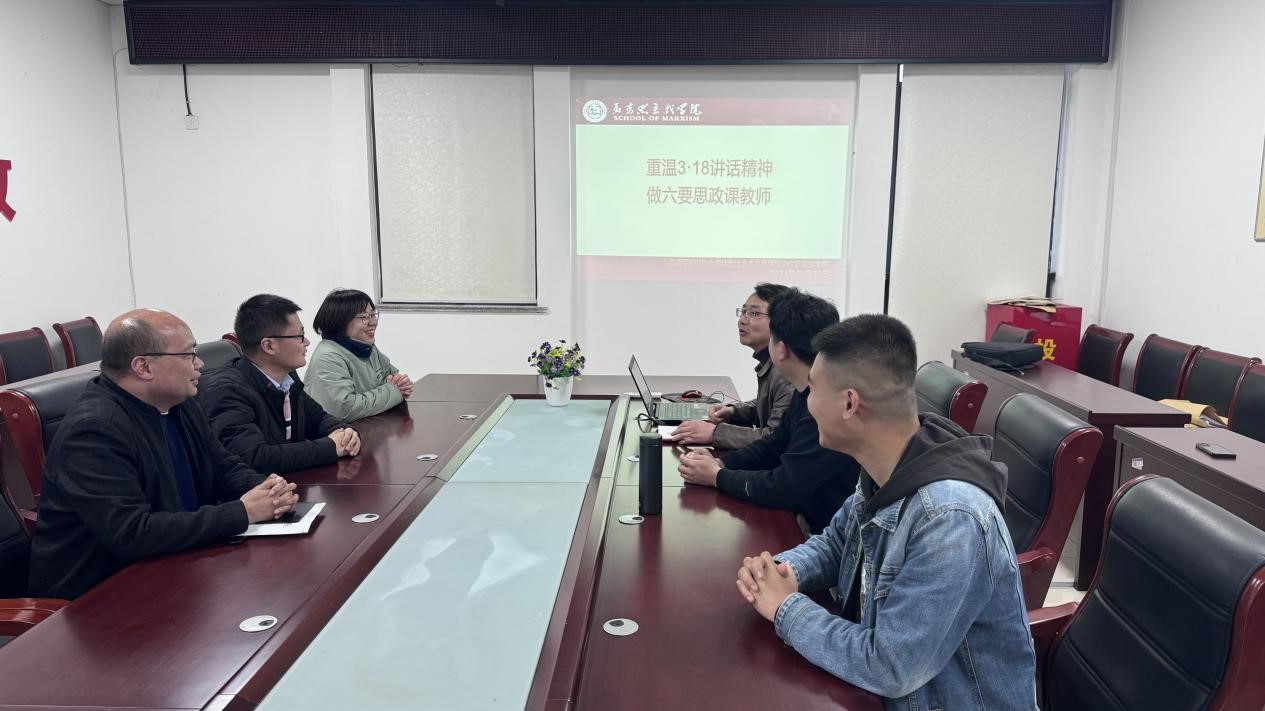3月20日下午,为深入学习贯彻习近平总书记在2019年3月18日学校思想政治理论课教师座谈会上的重要讲话精神,太阳集团网站8722习近平新时代中国特色社会主义思想概论教研室党支部在逸夫综合楼5508会议室开展了“重温3.18讲话精神,做好‘六要’思政课教师”的主题党日活动。