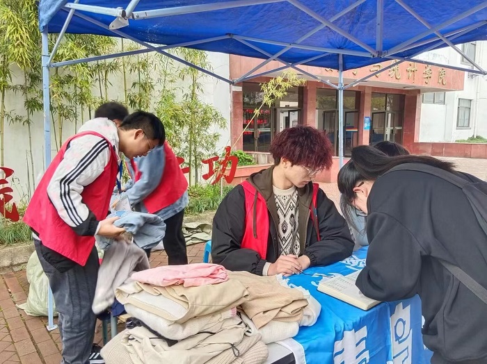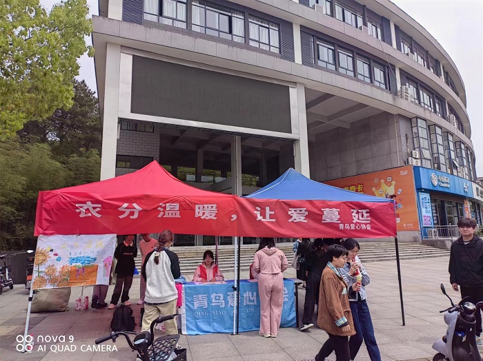4月13日全天,太阳集团网站8722挂靠社团——青鸟爱心协会携tyc8722太阳集团文学社于率水校区和横江校区举办“衣分温暖”活动。