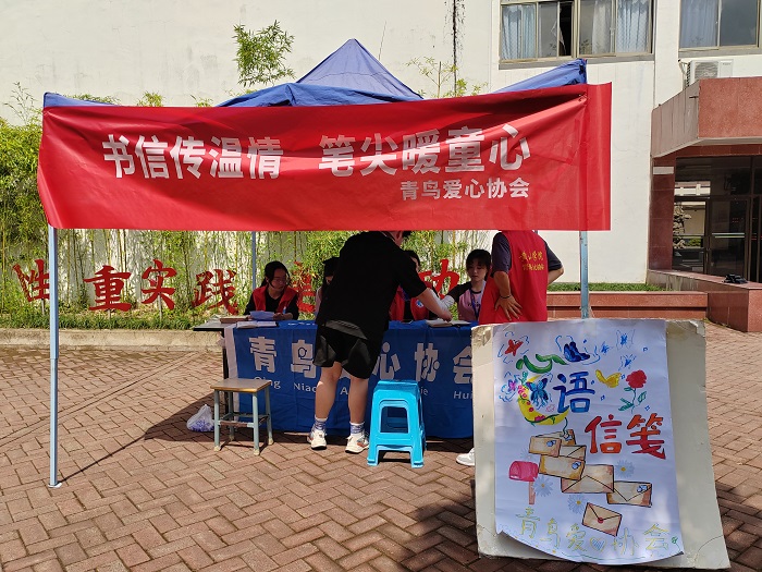 4月27日,太阳集团网站8722挂靠社团一一青鸟爱心协会,在率水校区与横江校区同时举办“心语信笺”活动。