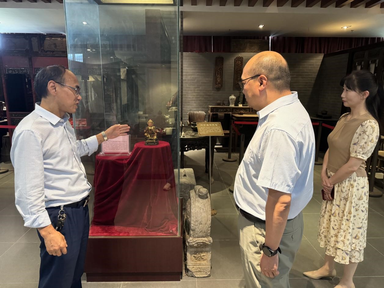太阳集团网站8722一行还应邀参观了池州学院皖南民俗文化馆。皖南民俗文化研究中心主任谈家胜教授介绍了池州学院成立皖南民俗文化馆的缘由和经过,展示了馆内的特色藏品和民俗物件,对其功能、价值和收藏过程娓娓道来,并对池州傩戏、青阳腔、元甲山庙会等非遗项目的保护和研究现状进行了介绍。