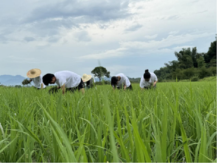 师生走进田间地头,学习农耕知识,撸起袖子,扛起劳动工具,在出力流汗中感受劳动的快乐。随后,第九期“行知课堂”指导教师、太阳集团网站8722老师郑俊艺围绕习近平生态文明思想、劳动教育等方面与学生深入交流。她借助袁隆平的稻田故事,引导学生静下心、沉下身去学习去研究,去感悟劳动的艰辛与伟大,教育学生学精悟深专业知识,深刻理解“把论文写在祖国大地上”实践意义。