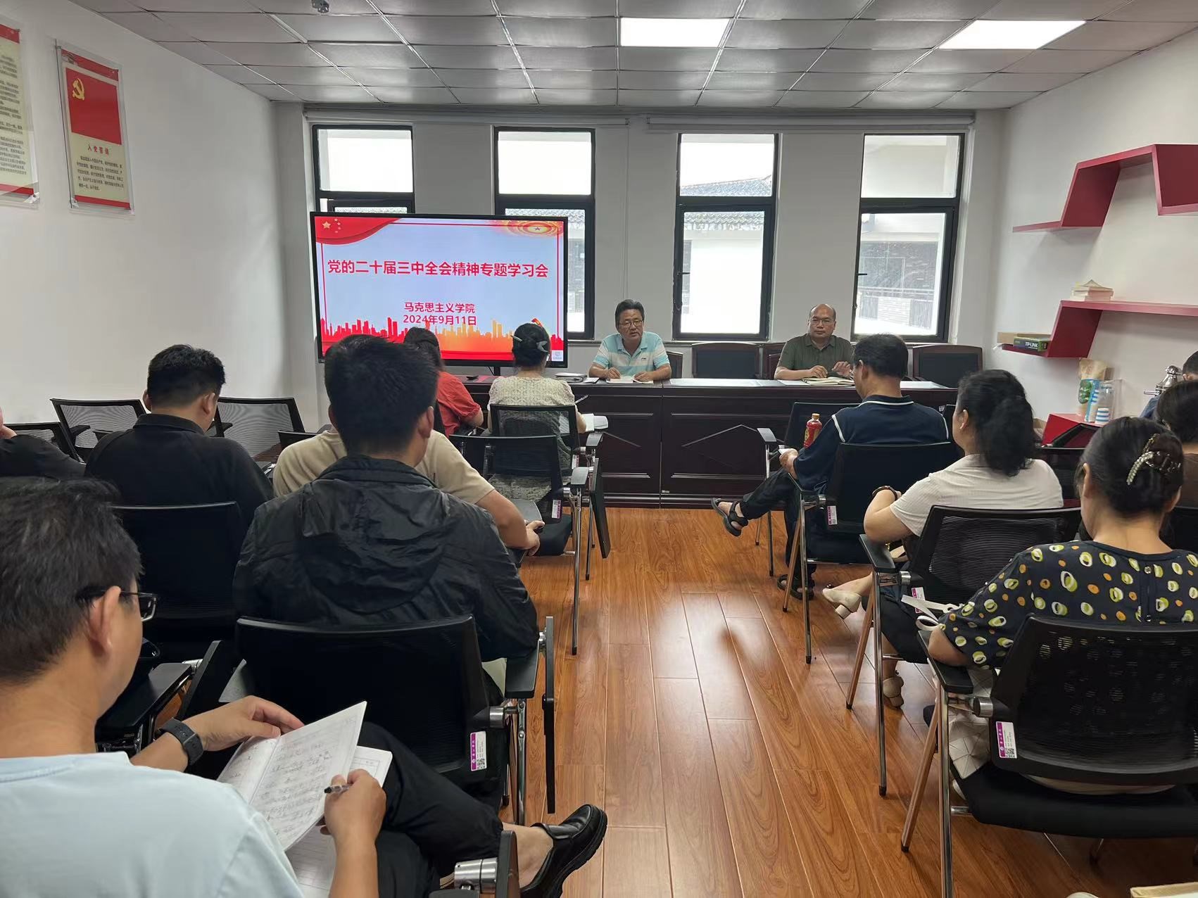 9月11日下午,太阳集团网站8722在逸夫综合楼5513会议室召开党的二十届三中全会精神专题学习会。会议由该院党总支书记刘春安主持。该院全体教师参加会议。