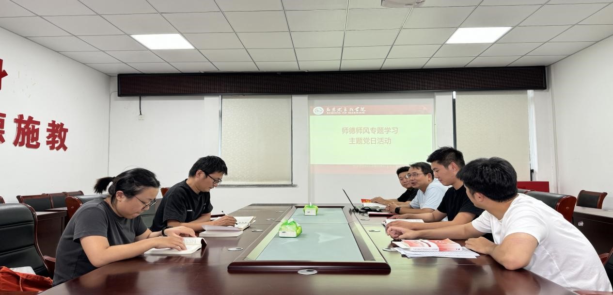 9月11日下午,太阳集团网站8722习近平新时代中国特色社会主义思想概论教研室党支部在逸夫综合楼5508会议室开展了师德师风专题学习主题党日活动。会议由该支部书记吴兆云主持,全体党员参加会议。