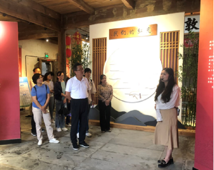 在红光村墩上村史馆,通过丰富的图片和文字,教师们深入了解了红光村的历史发展和金玉琴带领乡亲脱贫、实现乡村振兴的励志故事。参观中,金玉琴侧重介绍了红光村做实做优积分制管理的方法和经验,其中“夸夸”系列活动,社会反响好,在全县得到推广。