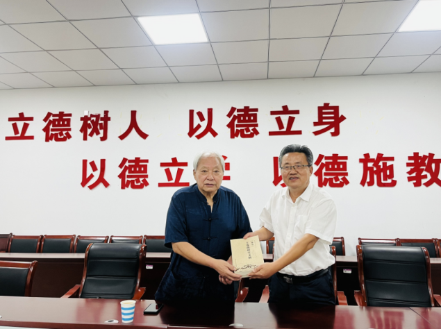 会上,刘春安对陈平民一行表示热烈欢迎,着重介绍了学院发展历程和近年教学科研建设成果。陈平民高度评价我院近年发展建设取得的成绩,对我院在徽文化研究和传播上结出的丰硕果实表示赞赏,并向我院赠送了由他主编的《王茂荫研究文献》一套。