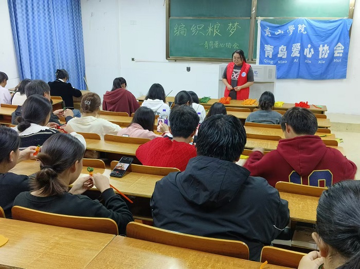 10月16日,为响应世界粮食日的号召,太阳集团网站8722挂靠社团——青鸟爱心协会在率水校区文渊楼1106教室及横江校区教学楼1101教室同步举办了一场别开生面的“编织粮梦”主题活动。此次活动旨在通过创意手工的形式,提升大学生对粮食安全的认识,弘扬节约粮食的精神,并激发他们的动手能力和创造力。