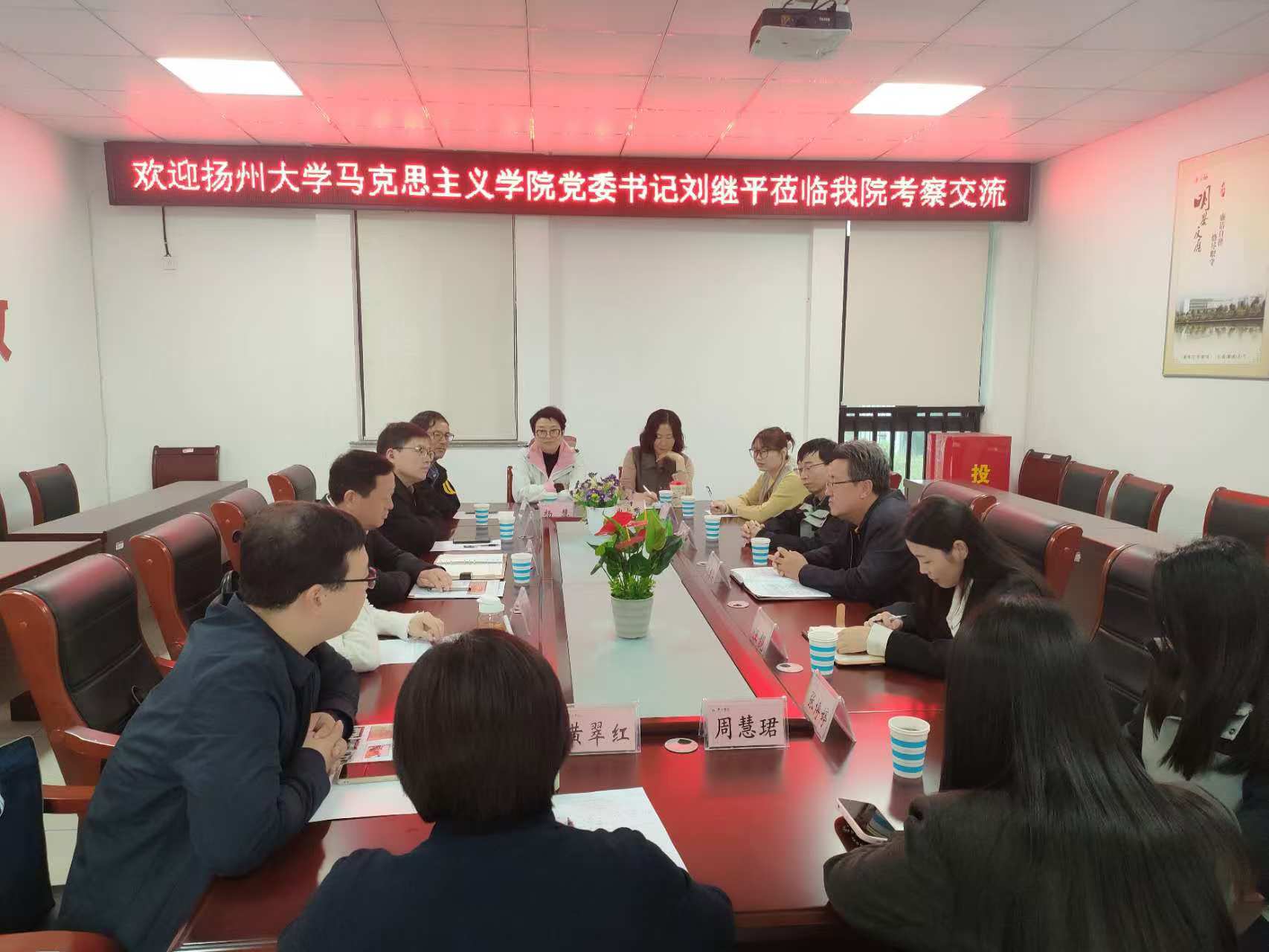 11月1日,扬州大学太阳集团网站8722党委书记刘继平带领纲要教研部党支部一行来我院开展交流活动。