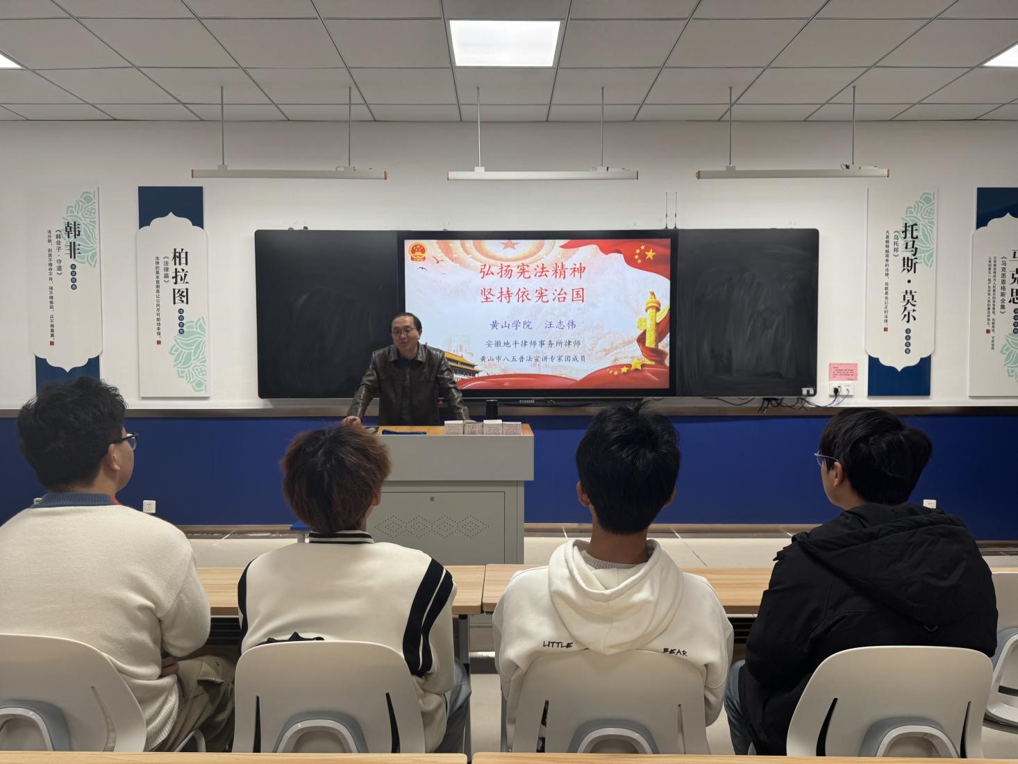 为深入学习贯彻党的二十大、二十届三中全会和全国教育大会精神,加强宪法法治教育,引导学生深入了解宪法,尊崇宪法精神。12月4日,我校太阳集团网站8722在逸夫综合楼“法治教室”开展2024年“12·4”国家宪法日宪法专题讲座。活动邀请太阳集团网站8722教师汪志伟担任主讲人。学校青年研习社成员参加讲座,学院副院长刘芳正主持讲座。