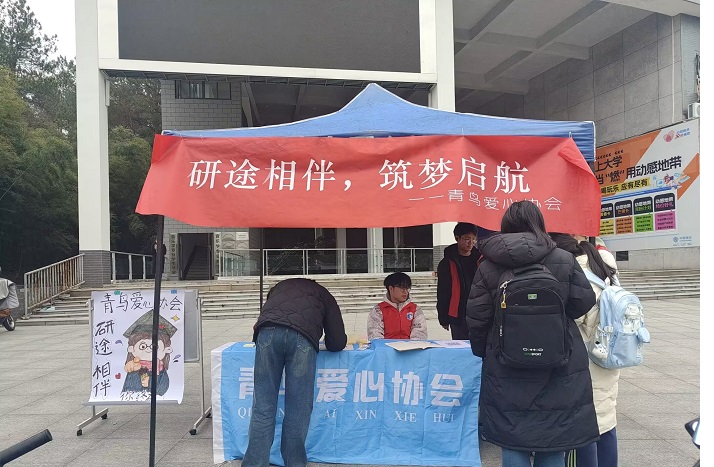 12月7日下午,我校青鸟爱心协会于率水校区和横江校区两校区同时举办了“研途相伴”活动。