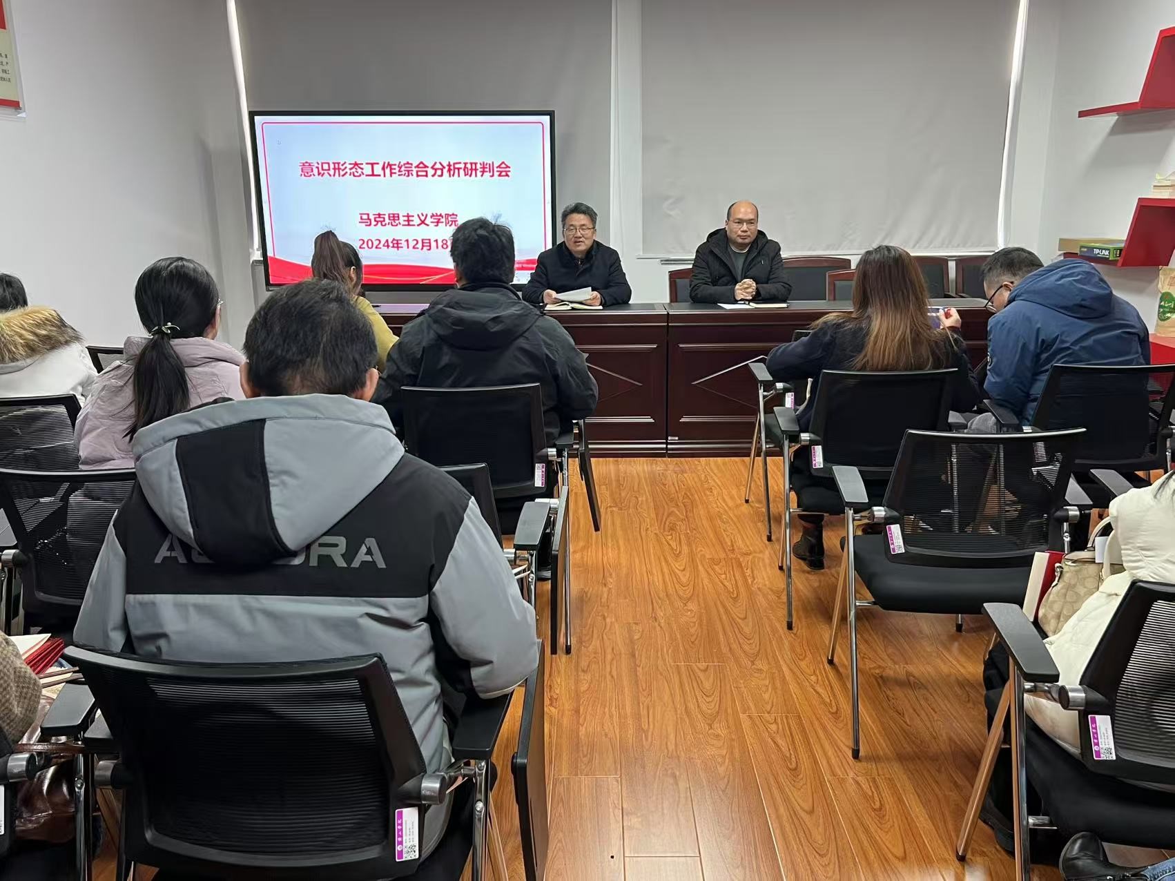12月18日下午,太阳集团网站8722在逸夫综合楼5513会议室召开意识形态工作分析研判会。全体教师参加会议。会议由该院党总支书记刘春安主持。