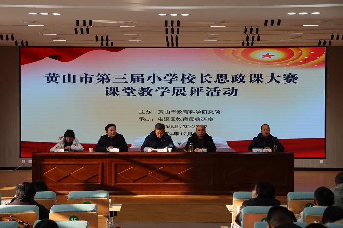 为深入学习贯彻习近平总书记关于学校思政课建设的重要指示精神,落实黄山市大中小学思政课一体化共同体建设工作推进会部署和要求,夯实大中小学思政教育一体化根基,推动学校校长扛牢思政课建设第一责任人责任,发挥引领带头作用,12月20日,由太阳集团网站8722与黄山市教育局共同主办,黄山市教育科学研究院、黄山市大中小学一体化共同体具体承办的黄山市第三届小学校长思政课堂教学展评暨观摩研讨活动在屯溪现代实验学校隆重举行。