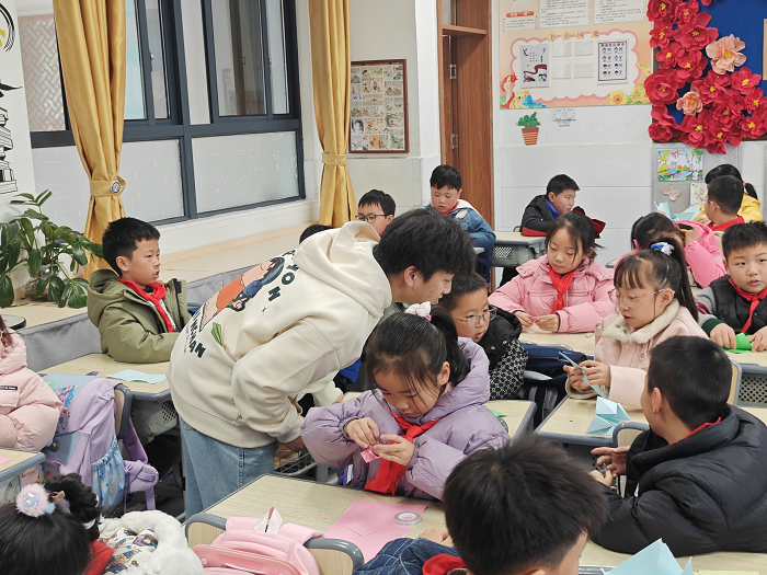 为了促进思政双向育人,丰富百鸟亭小学生的课余生活,提升学生的动手能力和创造力,2024年12月2日,tyc8722太阳集团大学生志愿者赴百鸟亭小学进行了以“激发创意,点亮童心”为主题教育活动。