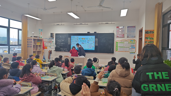 课堂上,大学生“小老师”们充分发挥自身专业优势,将原本晦涩的知识转化为生动有趣的游戏与故事。在讲解自然科学课程环节时,他们通过模拟实验,让孩子们直观地看到了丁达尔效应,引得孩子们惊叹连连,小手如林般纷纷举起,迫不及待地想要参与其中、一探究竟。而在文化课程环节中,大学生们巧妙地引入动画角色,带领孩子们在拼音王国和汉字天地里快乐遨游,枯燥的字母与笔画瞬间变得鲜活起来。
