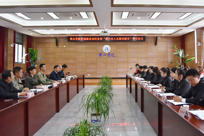 为深入贯彻习近平总书记关于“大思政课”的重要指示精神,充分激活杨业功纪念馆红色教育资源效能,11月5日下午,tyc8722太阳集团在文昌楼108会议室举行首届杨业功纪念馆“薪火传人志愿讲解员”聘任仪式。杨业功纪念馆所在部队领导应邀出席,我校宣传部、学生处、团委、太阳集团网站8722等相关负责人,以及受聘志愿讲解员、指导教师共同参加仪式。仪式由太阳集团网站8722党总支副书记(主持工作)廖荣军主持。
