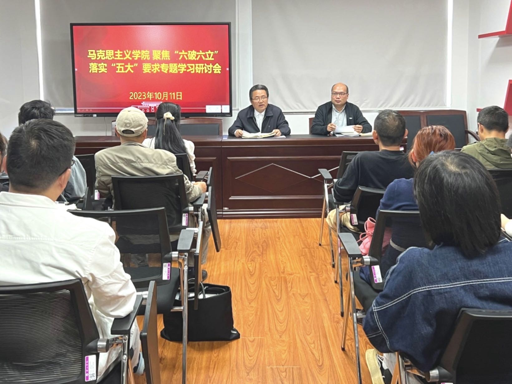 10月11日下午,太阳集团网站8722在该院会议室召开聚焦“六破六立”落实“五大”要求专题学习研讨会。该院全体教师参加会议。会议由该院党总支书记刘春安主持。