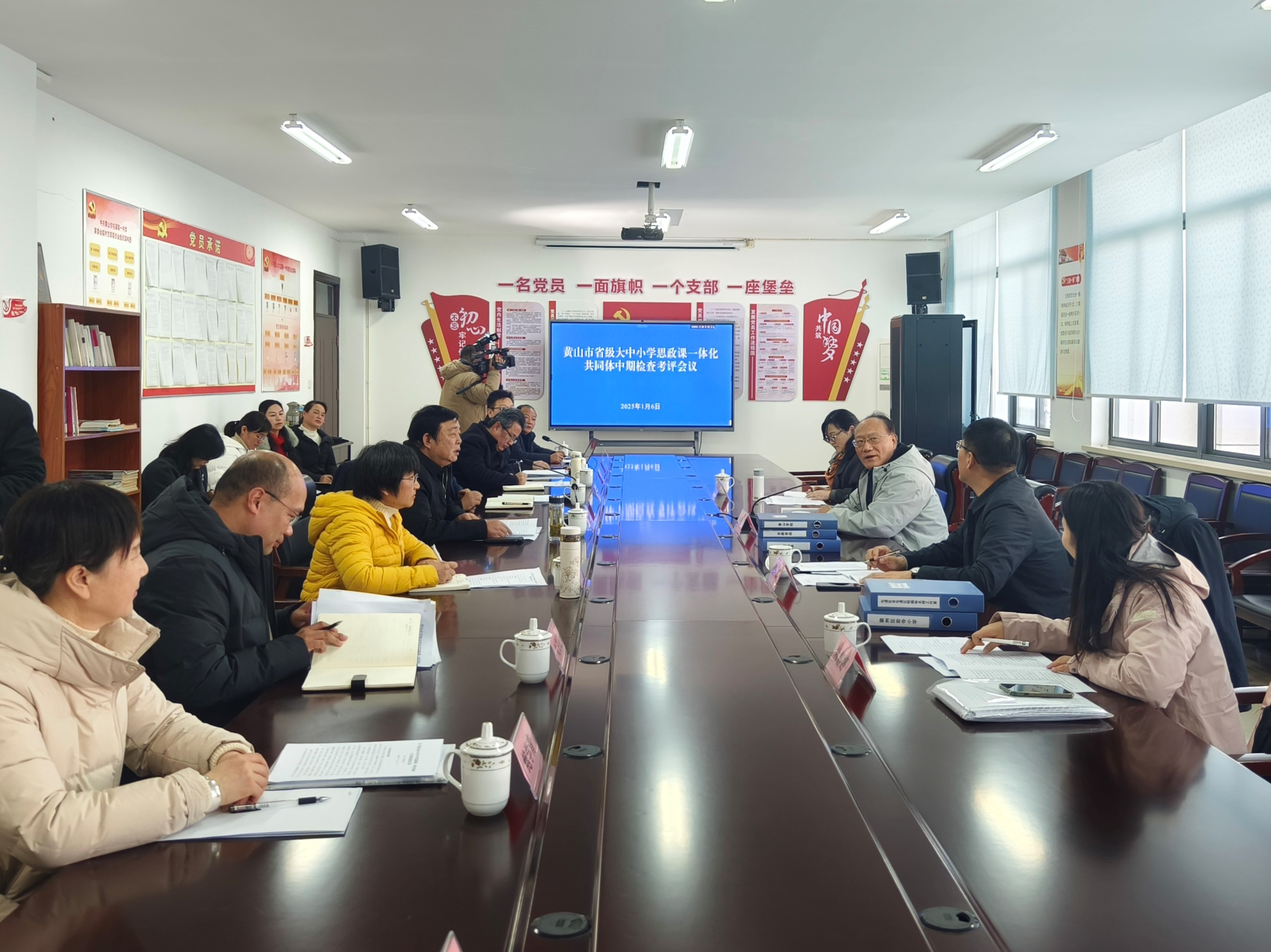 1月6日下午,省级大中小学思政课一体化共同体项目(黄山)中期检查现场考评会议在共同体成员单位屯溪一中召开。省大中小学思政课一体化建设专家指导组组长刘新跃,黄山市副市长王恒来、tyc8722太阳集团校党委委员、副院长张小明出席会议,考评专家组、共同体成员单位负责人等参加会议。会议由张小明主持。