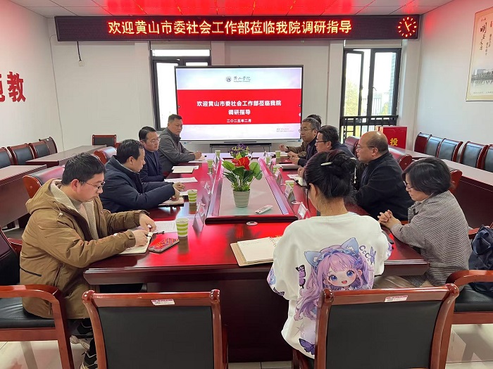2月28日,黄山市委社会工作部副部长吴伟刚一行4人,来我校就双方共建黄山市社会工作研究院进行调研洽谈。校长李庆宏会见了吴伟刚一行,希望双方能够进一步加强交流合作,实现优势互补,互利共赢,围绕重点研究领域、重大现实问题和重要战略方向开展理论研究和实践探索,积极推动合作取得丰硕成果。