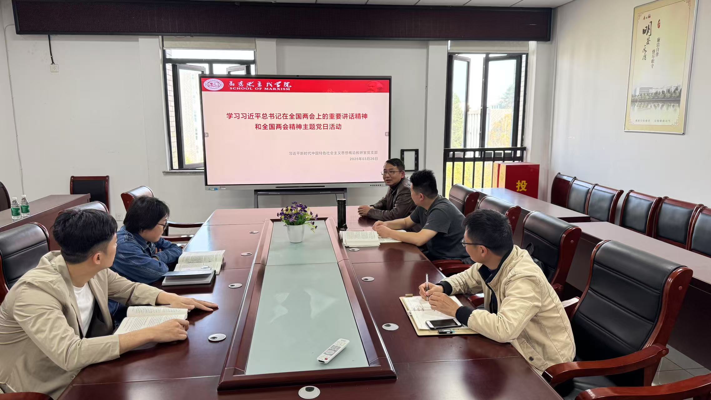 3月26日下午,习近平新时代中国特色社会主义思想概论教研室党支部在逸夫综合楼5508会议室开展了学习习近平总书记在全国两会上的重要讲话精神和全国两会精神主题党日活动。